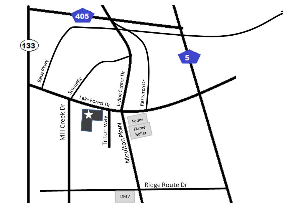 From South of Laguna Hills: You can exit the 5 free way at the Lake Forest exit. Take a left turn at the off ramp and after you’ve crossed Moulton Pkway, we are one block down on the left hand side. Look for the orange roof building.